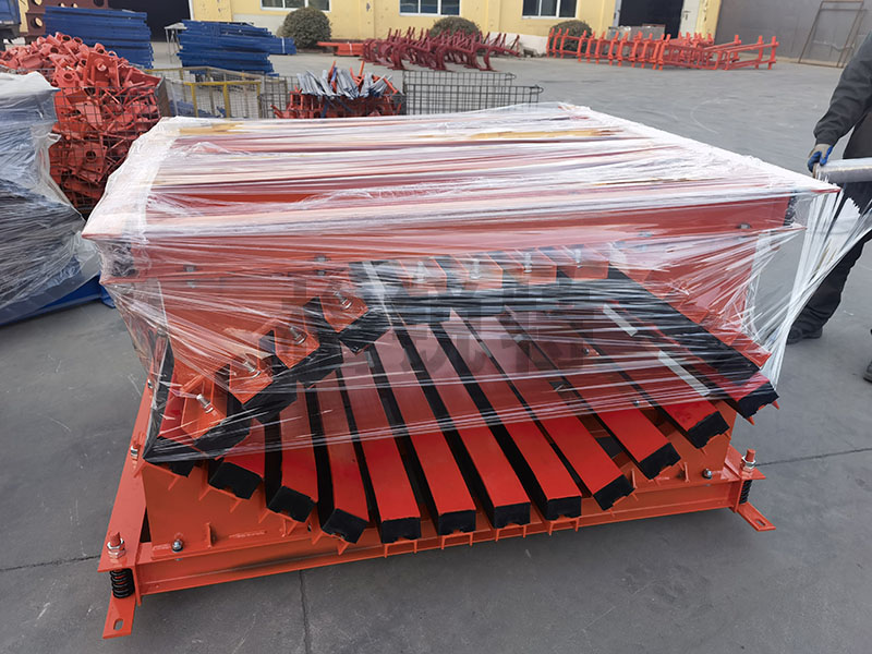 合金橡膠清掃器利用橡膠體本身的彈性性能,可自動(dòng)調(diào)節(jié)清掃器刮板與輸送機(jī)膠帶之間的接觸壓力,橡膠體的緩沖作用,保證了刮板與運(yùn)行的膠帶受力在一定合···